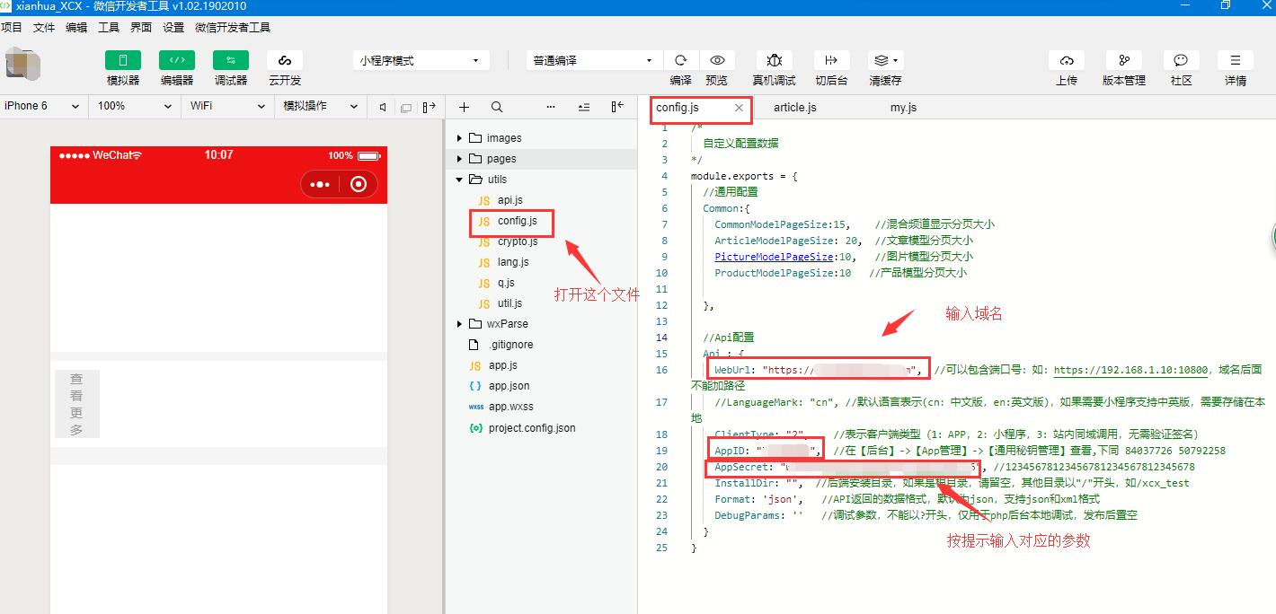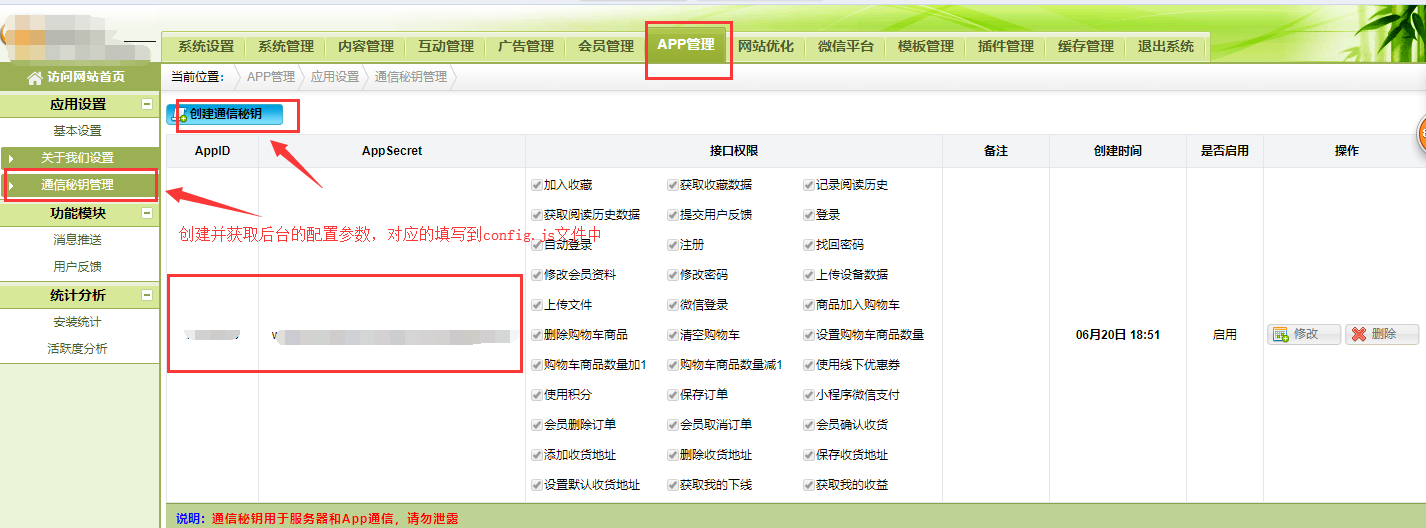 后臺【APP管理】-【通信秘鑰管理】里面獲取參數(shù)填寫到小程序文件 utils/config.js