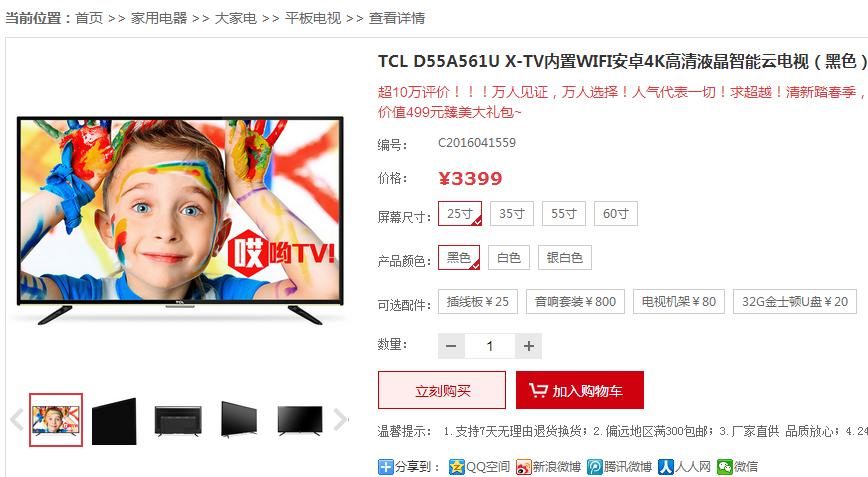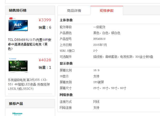 下圖為剛才對應(yīng)填寫的電視機屬性顯示: