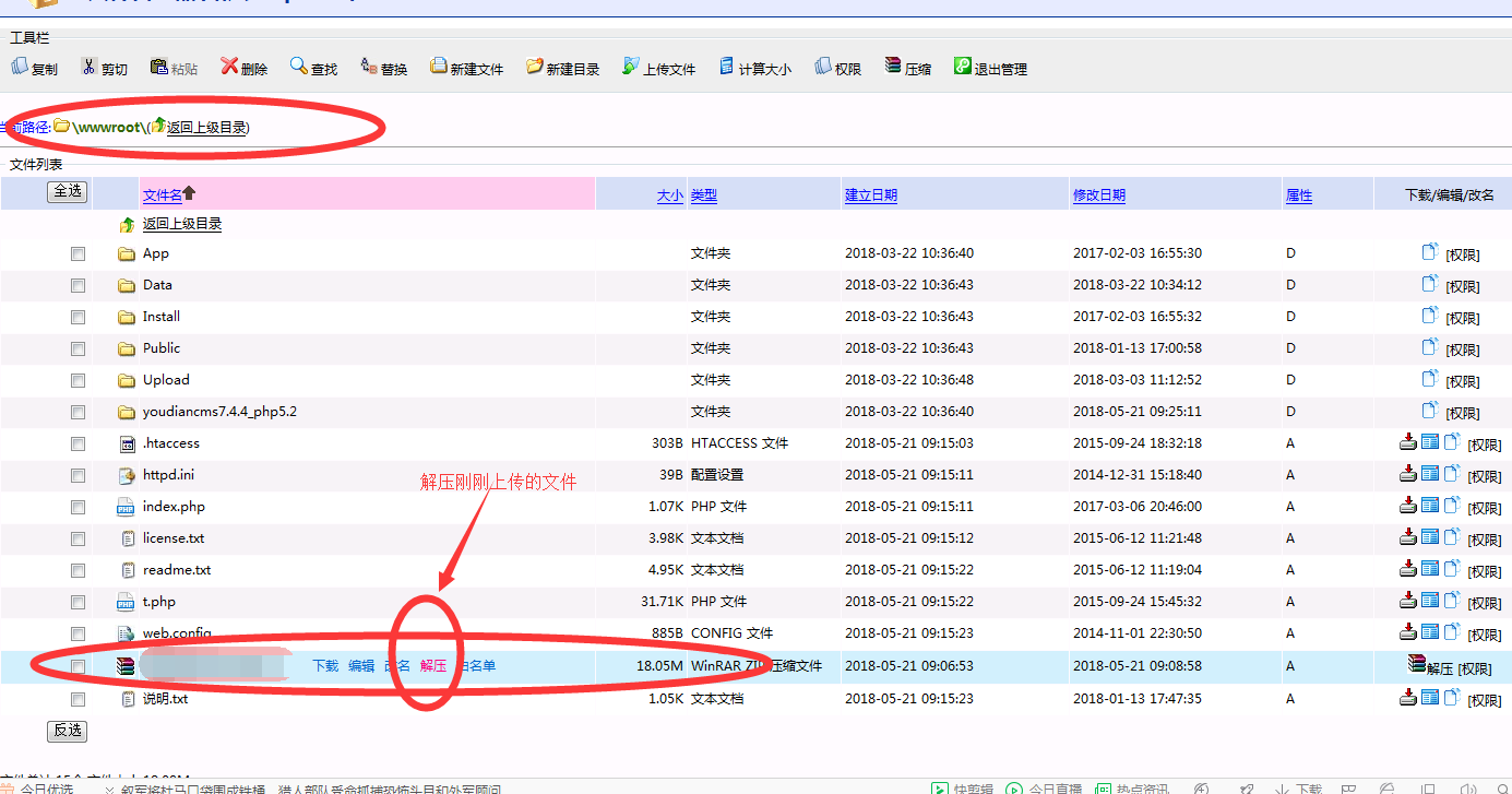 1、 下載我們系統的程序,打包成ZIP文件(不要單獨上傳解壓后的文件)下載地址:點擊下載YouDianCMS系統