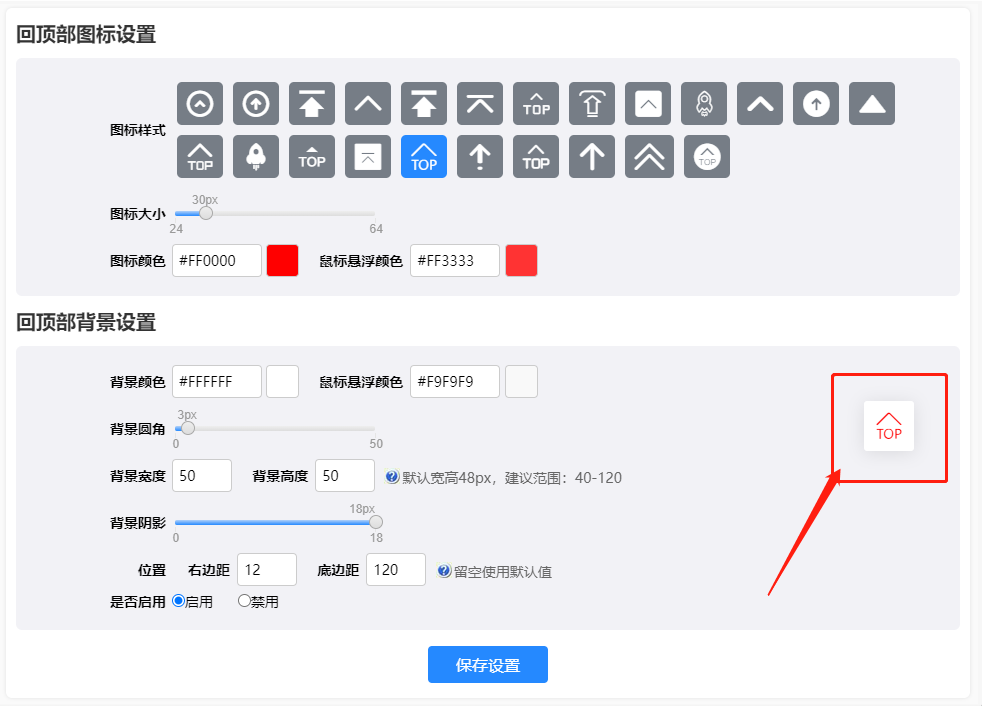 如何設置和修改TOP返回頂部按鈕樣式?
