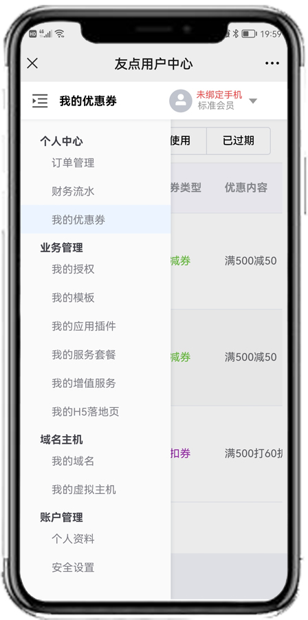 手機端也能夠方便的登錄用戶中心,進行購買、管理和操作!